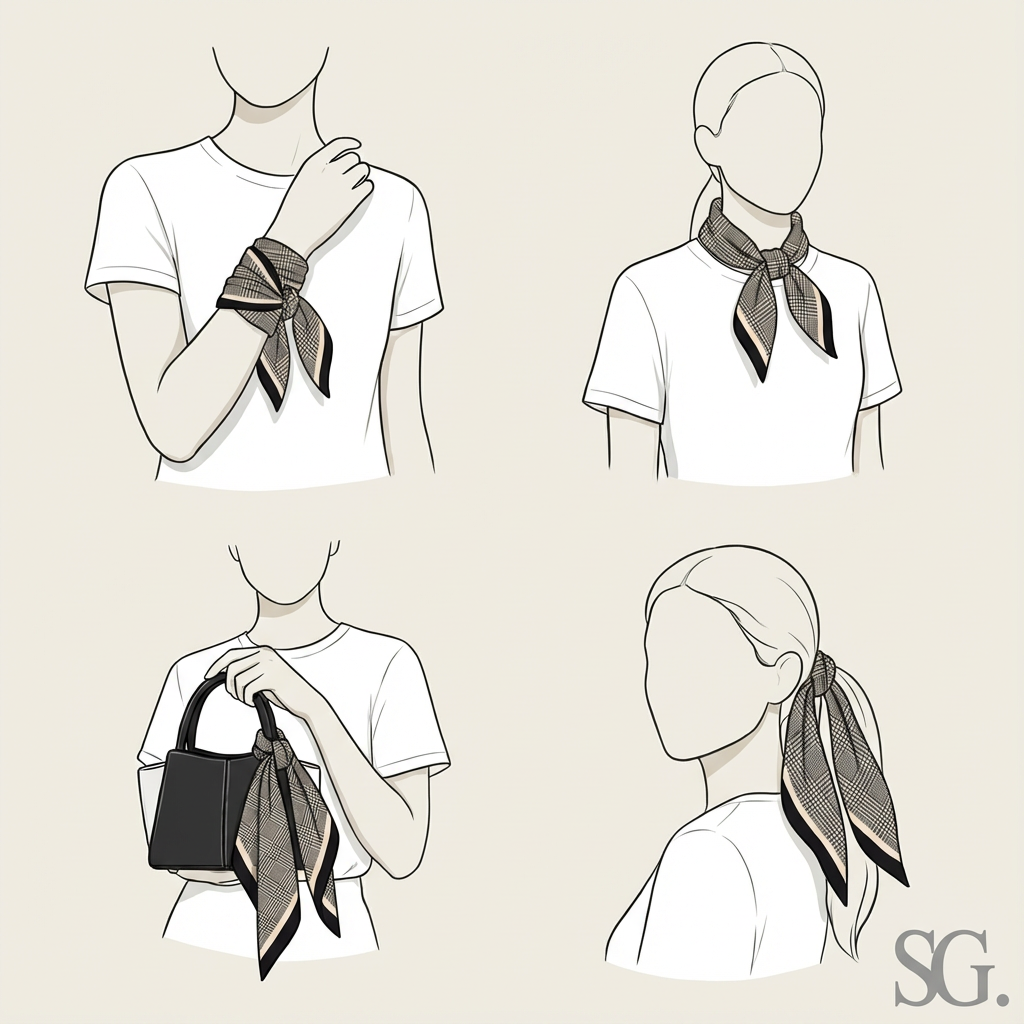 Celine, vår svartvita scarf, blandar en klassisk och modern touch. Perfekt runt halsen, som hårband eller en detalj på handväskan.